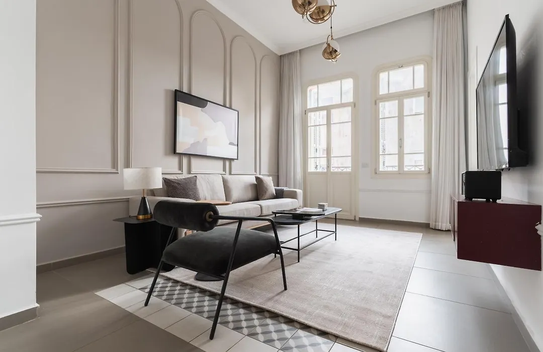 Featuring views of the city, Blueground At Nahalat Byniamin, Exquisite Apartment has a terrace and a sitting area equipped with air conditioning. For your comfort, you will find a tub and a walk-in shower at this accommodation. A hairdryer, free toiletries, and bath sheets are also included in the bathroom.